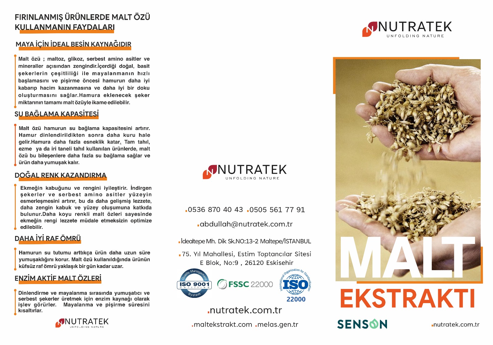 Finlandiya menşeli Senson firmasının Türkiye distribütörüyüz. Arpa maltı ve çeşitli tahıl ekstraktlarını yıl boyu stoklu olarak çalışıyoruz. Bunun haricinde gıda tipi şeker kamışı melası ithalatı ve satışını yapmaktayız.